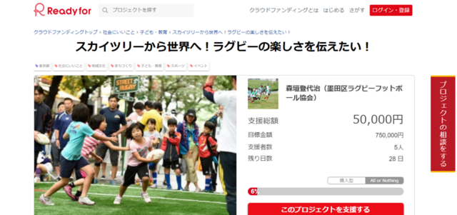 「ストリートラグビーat東京スカイツリータウン」がクラウドファンディング開始