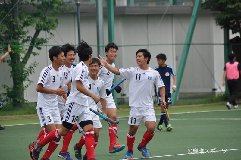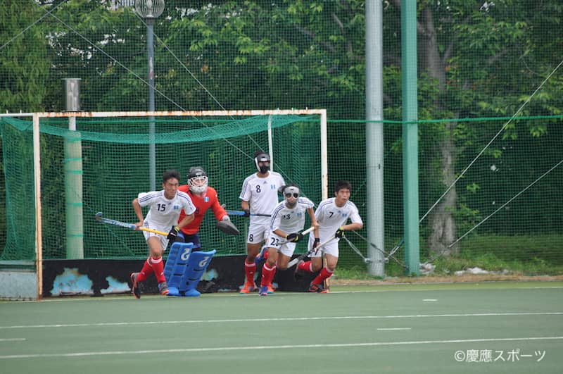 第2Q。早速MF田畑智哉(政2・慶應志木)がボールを運び、MF中山正暉(経2・慶應)がそれを受けサークルイン。惜しくもここでは得点を生むことはできなかったが、2分、獲得したPCから一旦は相手GKに当たるも、そこをFW前多がすかさずシュートし見事先制点を挙げた。勢いづくかと思われたが、サイドから追い上げてくる駿河台大に翻弄され、7分には相手PCで危機に。なんとかGK小川ら守備の堅い守りで失点とはしなかったが、ペースをつかみきることができない。ついにはこのQ終了まで追加点を挙げることができず、前半を折り返した。