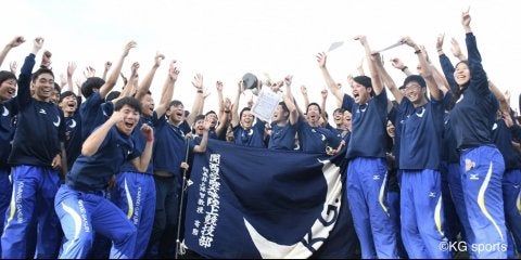 <写真・優勝カップを囲み、笑顔を見せる陸上部員たち> 5月19日、鴻ノ池陸上競技場にて第96回関西学生陸上競技対校選手権…