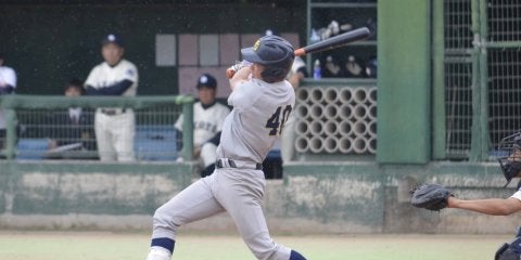 <写真・今季3号本塁打を含む4安打を放った野口> 5月20日、大阪府南港中央野球場にて2019年度関西学生野球連盟…