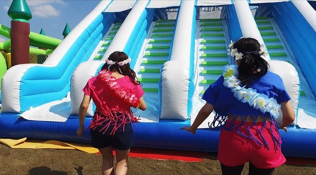 「ふわふわラン」は、コースに設置された「ふわふわステーション」と呼ばれるアトラクションを乗り越えてゴールを目指すファンランだ。高さ約10メートル級の巨大スライダーをはじめ、10種類以上の特大ふわふわアトラクションを走ったり、歩いたり、写真を撮ったりしながら楽しむことができる。