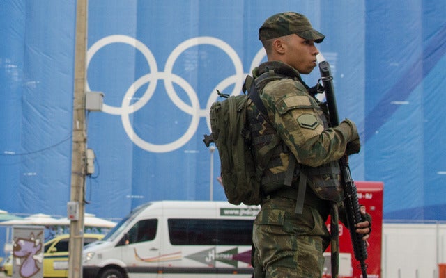 リオデジャネイロ五輪市内で立哨する軍人(2016年8月3日)撮影:編集部