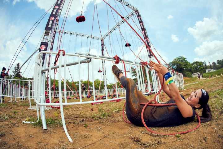 水に潜って障害物をくぐる「Dunk Wall(ダンクウォール)」や、張り巡らされた有刺鉄線の下を匍匐前進で進む「Barbed Wire Crawl(バーブワイヤークロール)」など、参加者は数々の難関を乗り越えてゴールへ。SUPERエリートの男子1位となる優勝選手のタイムは1時間06分33秒、女子の優勝選手のタイムは1時間30分37秒と、驚異的な速さを見せつけました。