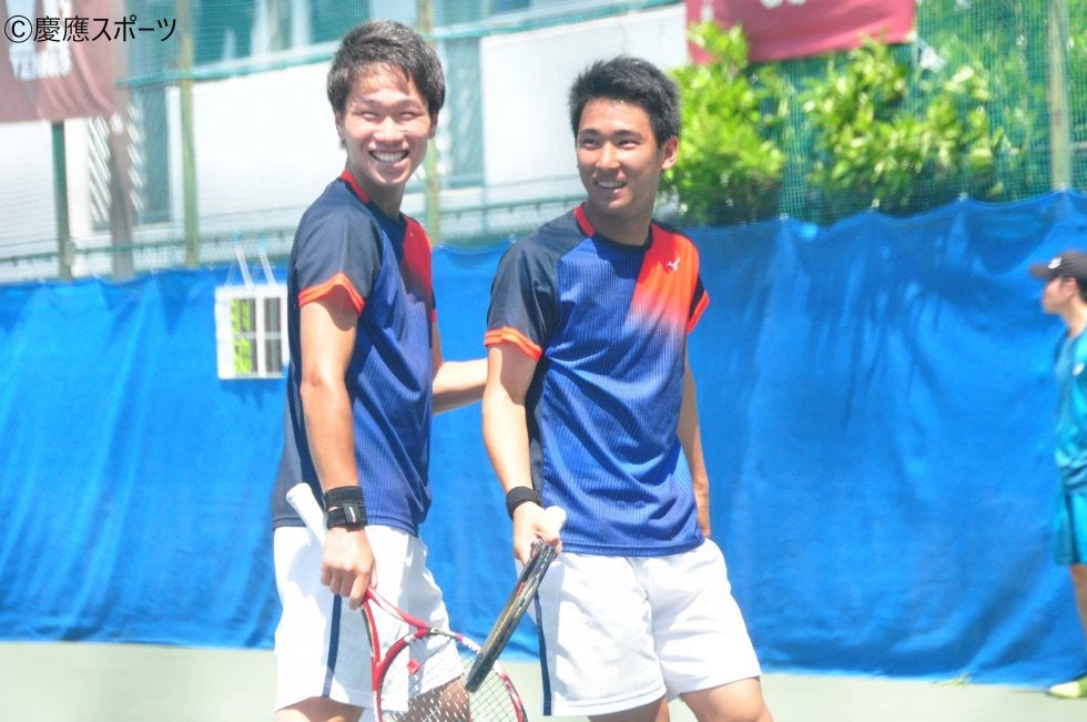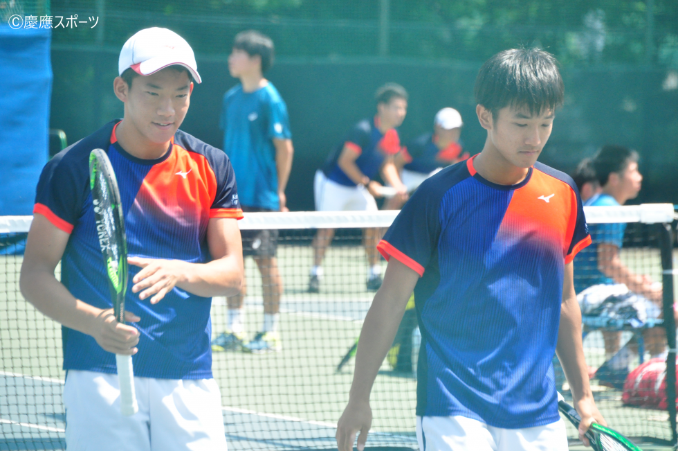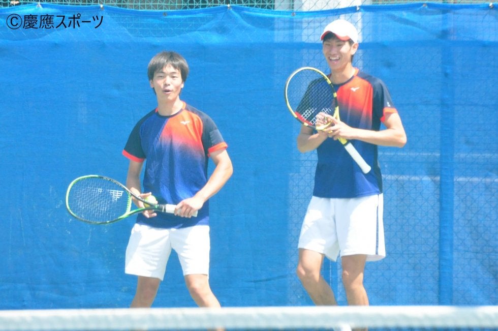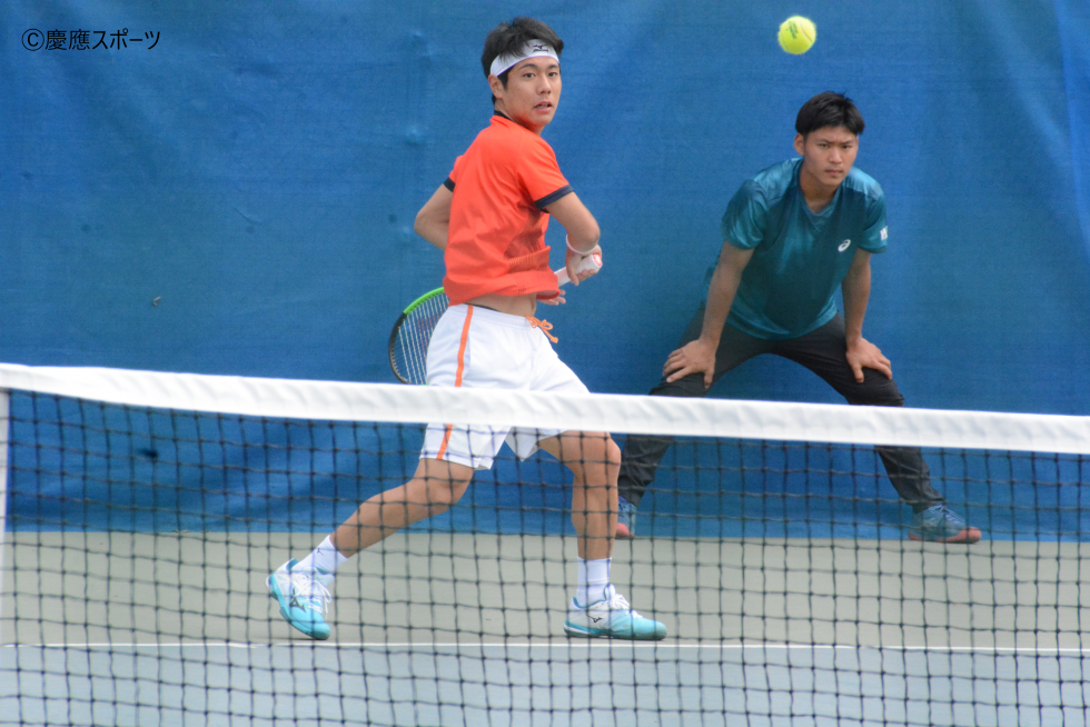 D2は、小清水拓生(総3・清風)・羽澤慎治(環2・西宮甲英)組。第2コートで島袋・髙村組と対戦。試合開始からダブル前衛のフォーメーションでネットプレーを確実に決めるなど、攻撃的なテニスを展開。しかし、相手ペアにストレートを決められるなど、積極的なプレーが裏目に出てしまい、試合の主導権を掴めなかった。悔しいストレート負けを喫した。
