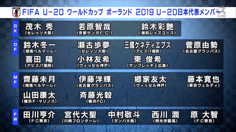 5月17日放送のサッカー情報番組『スカサカ!ライブ』#104では、開幕が間近に迫ったU-20W杯について議論が行われた。