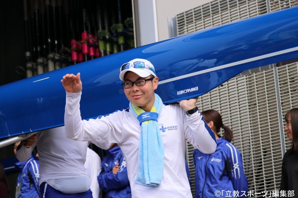 立大の対抗種目・舵手なしフォアのクルーとして3年連続で全日本選手権に出場するのは副将の吉田潤(営4)。愛称は“ヨシジュン…