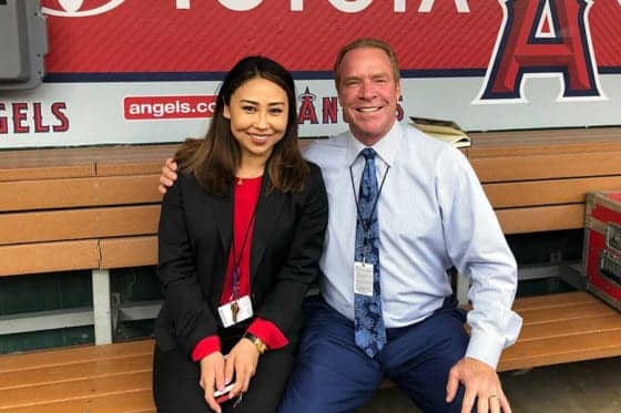 1993年にヤクルトで活躍していたレックス・ハドラー氏(右)と野村克也氏の孫・沙亜也さん【写真:盆子原浩二】