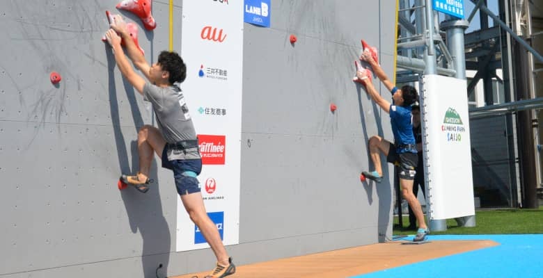 25日午前、第2回コンバインドジャパンカップが石鎚クライミングパークSAIJO(愛媛・西条)で開幕した。先におこなわれた男子予選では、原田海を筆頭に藤井快、楢﨑智亜、楢崎明智のオリンピック強化Sランク選手4人が上位を占める形となった。