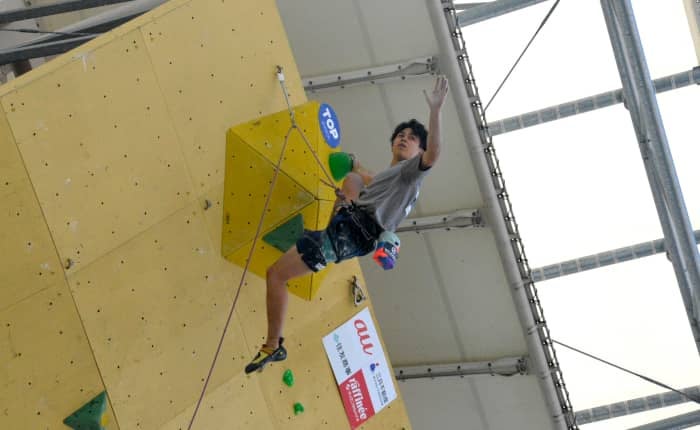 最終種目リードで唯一の完登者となった原田海。