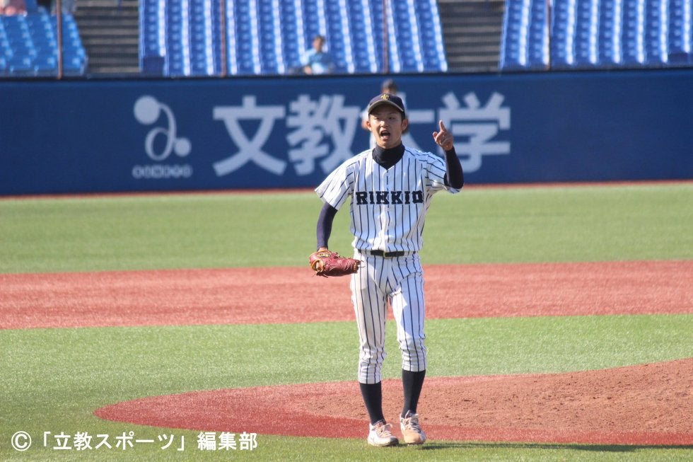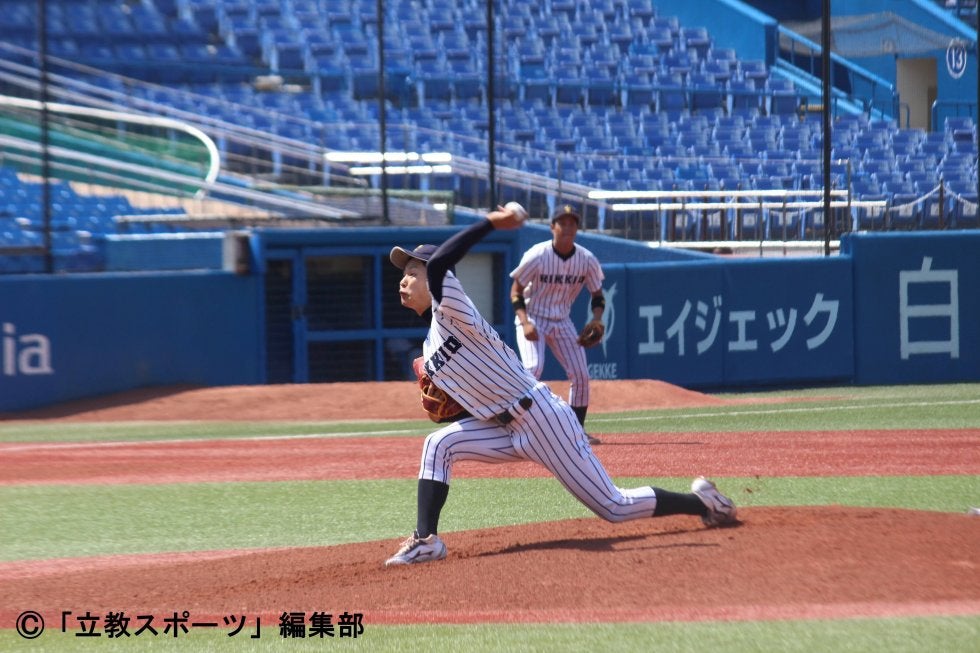秋に優勝を目指すのならば、これくらいしなければいけないと思いました。しっかり繋がったのでよかったと思います。(六大学通算200奪三振については)素直にうれしいです。(8回のピンチで監督と話したことは)「このバッターで終われるように思い切って勝負しよう」と話していました。(久々の竹葉(コ3=龍谷大平安)とのバッテリーについて)練習などではよく組んでいるので特に緊張はしませんでした。竹葉は緊張しているかもしれませんが、自分からしたら支障なかったかなと思います。(今季を振り返って)時間の流れが一瞬でした。やっぱり勝ちたいなという気持ちが多く残ったシーズンでした。秋にしっかり繋がるように明日勝って、夏の練習に取り組んで行けたらなと思います。(今後の意気込みについて)まず明日勝ちたいです。秋はもっと勝てる投手になれるように頑張りたいと思います。