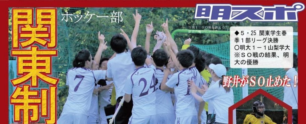実力は拮抗(きっこう)していた。第1Q終了間際にPC(ペナルティコーナー)を獲得。「決めるという気持ちしかなかった」(DF古川裕大・政経2=伊万里商)とPCの要・古川が一閃。昨秋の関東王者相手に大きな1点を奪い取った。その後は一進一退の攻防が続いた。明大が切り込めば、山梨学大がカウンターで押し返す。引き締まった試合展開で両者譲らず、次に試合が動いたのは第4Q12分。相手がPCでネットを揺らし、試合は振り出しに。試合終了間際で王者が牙をむいた。