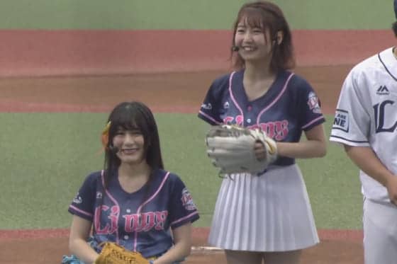西武、SKE48&仮面女子が始球式 溢れる笑顔で観客沸かす「また今年もツーバンに…」