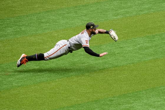 ジャイアンツのケビン・ピラー外野手が25日(日本時間26日)、本拠地でのダイヤモンドバックス戦で“スーパーマン”ダイブの超美技を見せた。空中を舞うダイビングキャッチから一塁へ送球し併殺を完成させたプレーをMLB公式サイト、ジャイアンツ球団公式ツイッターが伝えている。