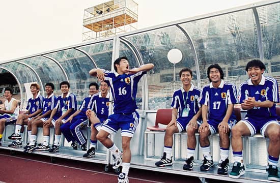 トルシエ監督のモノマネをするなどして、チームを盛り上げた播戸(中央)。photo by Yanagawa Go
