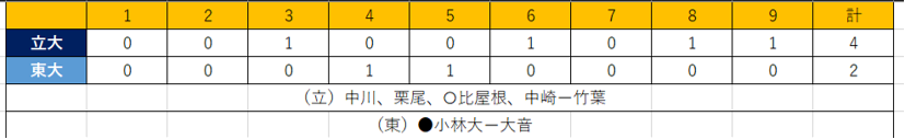 | [9] | 小野 大 (文4=横浜) | 3 | 1 | 1 |