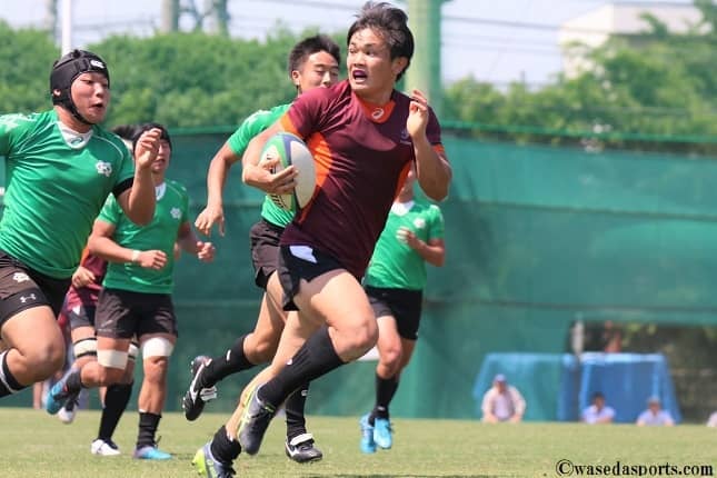 後半開始2分、CTB平田楓太(スポ1=福岡・東筑)が抜け出すと、サポートのFB松下怜央(スポ1=神奈川・関東学院六浦)、WTB槇瑛人(スポ1=東京・国学院久我山)がそれぞれゲイン。最後はまた平田がサポートし、グラウンディング。続く後半5分、平田からパスを受けた槙が流れながら抜け出すと、相良につなぎ右大外にトライし、得点を重ねる。ここまで前半の新人早大ペースをそのまま継続していたが、9分の自陣ゴール前スクラムをターンオーバーされ、そのまま押し込まれた。その後も失点し、徐々に新人慶大に主導権をにぎられ始める。さらに試合中盤以降、展開が一変。「暑かったのでみんなバテてプレーが適当になってしまった」、「チームディフェンスが疲れてくると脆くなっているのを感じた」と松下、吉村の両選手が語ったように一気にパフォーマンスが低下。ディフェンスラインが形成し切れず、大外で抜かれてしまう場面が増えてきたのだ。22分のパスを奪われ独走されたトライを皮切りに、新人慶大の猛追が始まり約10分で3連続トライを挙げられてしまう。そのまま終了間際まで攻め込まれ続けるも、何とかしのぎ切り48ー41で試合を終えた。
