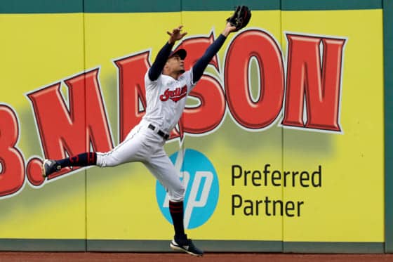 フェンス上段に当たり跳ね返ったボールがグラブに当たりスタンドインRソックス 12-5 インディアンス(日本時間28日・ボ…