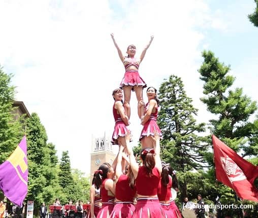 法大との東京六大学春季リーグ戦(春季リーグ戦)前合同デモンストレーション(デモスト)が、早稲田キャンパス3号館前で開催…