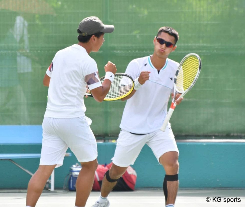 <写真・ダブルス本戦2回戦で逆転勝利を挙げた栗山・天野組>