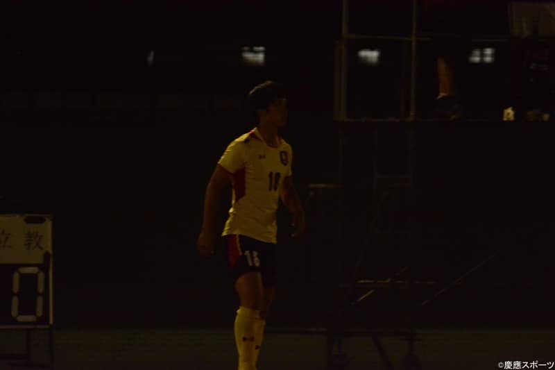 後半に入ると日も沈み照明が灯った。後半も慶大ペースは揺るがない。空いたスペースに橋本、八田、福本を中心になって走り込んでチャンスを作り出すと、53分にはその橋本が正確なロングクロスをゴール前に走る山田へ。山田はこれを冷静に押し込み4点目。