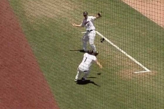 米国大学野球で起こった美技に称賛の声が集まる(画像はスクリーンショット)