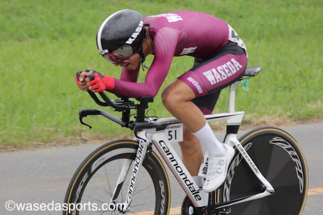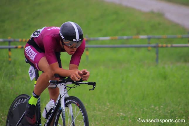 日本一の流域面積でおなじみの利根川の上流域にて個人ロードタイムトライアル(個人TT)が行われた。個人TTでは特設コース31.2キロメートルを走り、フィニッシュ時のタイムを競う。現地はくもりで気温はそこまで高くなく、時折風が強い風が吹くこともあったが比較的走りやすい気候となった。早大からは中川拳主将(スポ4=北海道・帯広三条)、小野寛斗(スポ3=神奈川・横浜)、片野陸(スポ3=長野・鹿町工)、山本真寛(社3=青森・八戸工大第一)、細田悠太(スポ1=鹿児島・南大隅)らがクラス1+2に、萩本拓也(法4=熊本)が普及レースに出走した。昨年の同大会で2位だった中川主将が3位となり見事入賞を果たした。