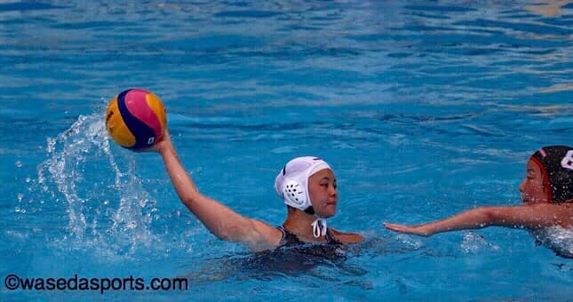 出だしはいい流れだった。開始1分24秒、百田恵梨香(社4=埼玉・秀明英光)のループシュートで早大が先制すると、2点目も百田が決め2-0と好発進。その後は攻守が激しく入れ替わり互いに点を奪い合う。相手がバックシュートやカウンターで点を入れれば、こちらも土屋セナ(創理3=千葉・芝浦工大柏)のペナルティーシュートや塗師の得点で取り返す。1ピリオド目は4-4と同点で終えた。続く2ピリオド目、序盤上手くパスが回らない場面も見られたが、相手のミスで生まれたチャンスを逃さない。相手が退水(※)となっている間に百田が1点、また相手のパスミスからボールを奪い土屋、松本桃子(先理2=神奈川大付)とつなぎ7-6。1点リードの状態で前半を折り返す。