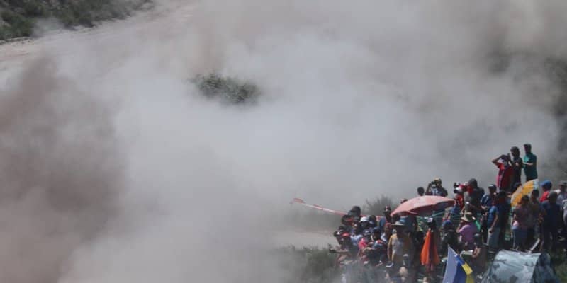 タクトさんが激写したのは、ボンネットが開いたまま走行するWRC2のヤン・コペッキーのシュコダ・ファビアR5。 前方が全く…