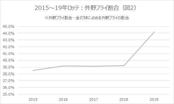 ■ロッテの外野フライ割合が激増