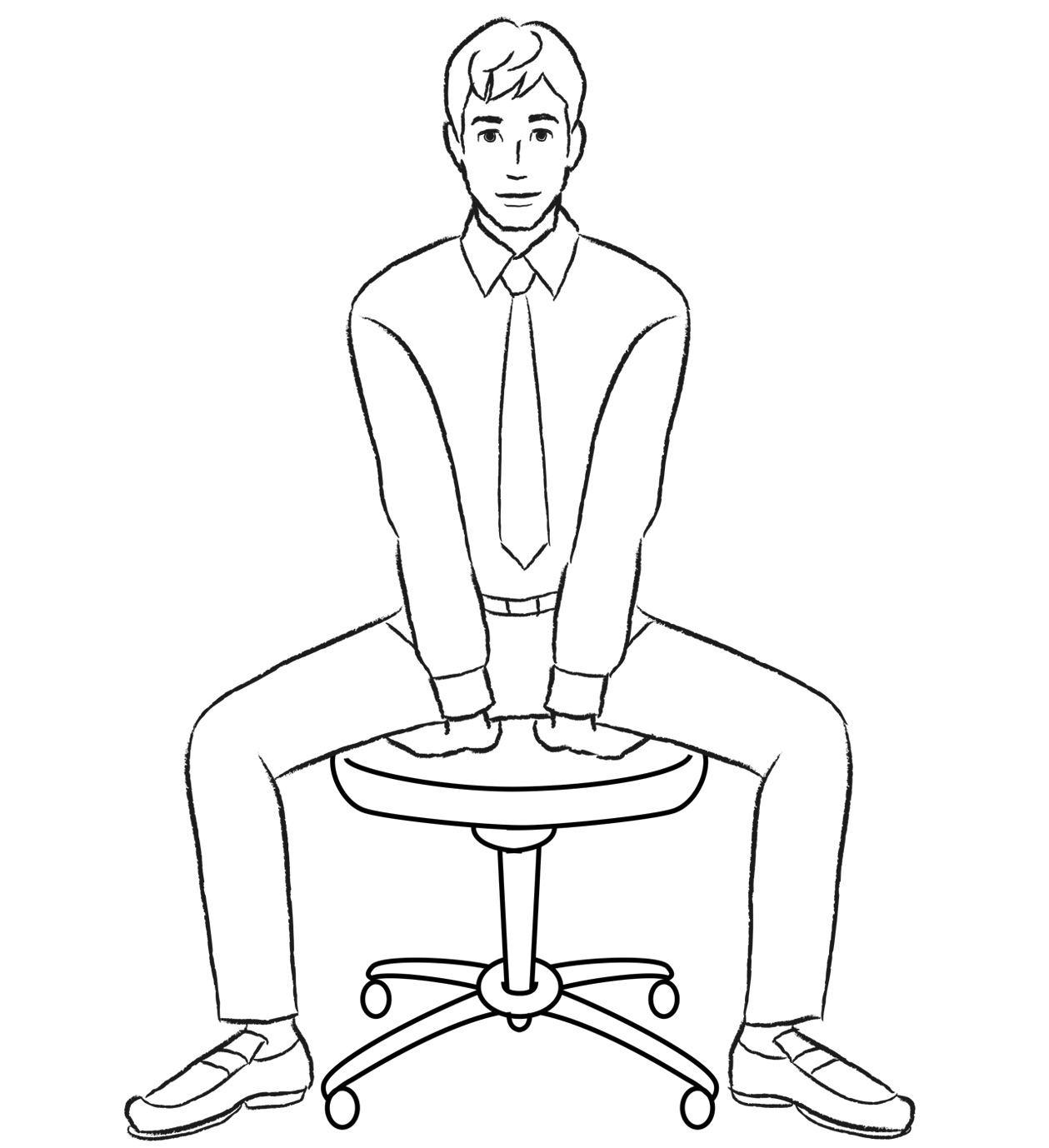 2.両足を開き、椅子をまたぐようにして手の甲の上に座ります。