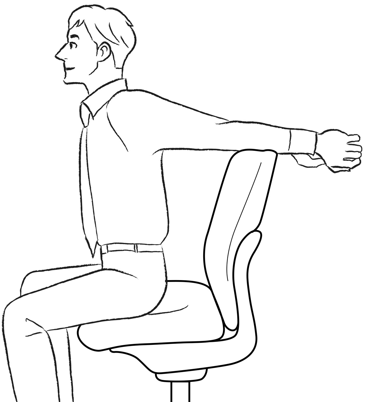 2.両腕を後ろに上げて両手首を背もたれにのせます。