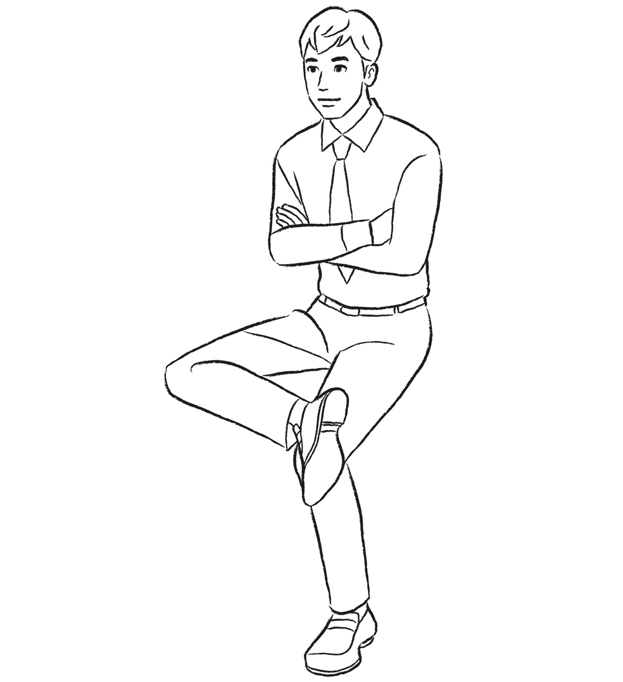 2.右足首を左ひざにのせ、背筋を伸ばしたまま腰を落とします。