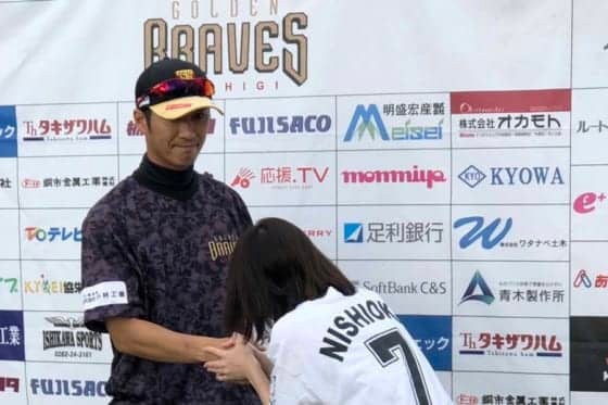 NPB復帰を目指し、BCリーグ栃木でプレーする西岡剛内野手のファンが8日、小山運動公園野球場に集まった。