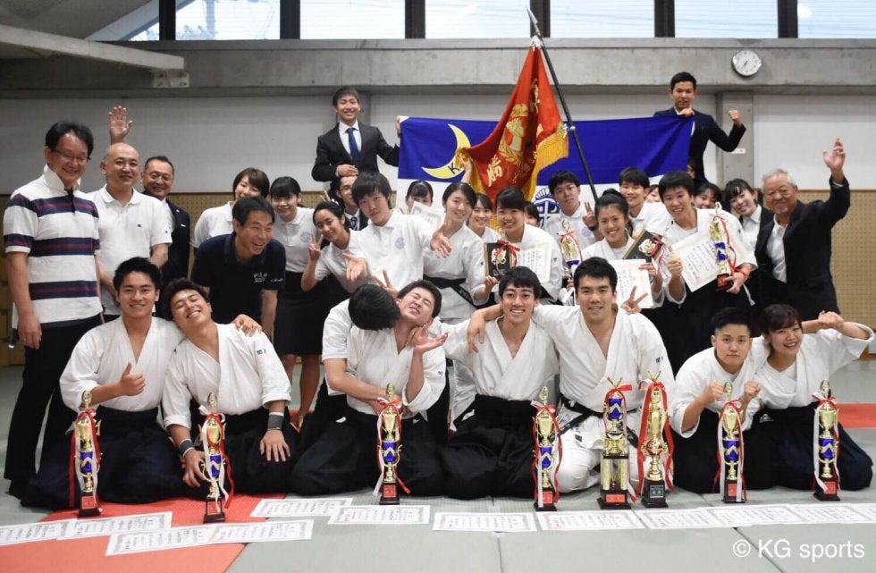 <写真・試合後、笑顔で集合写真に応じる選手たち> 6月9日、大阪府住吉武道館にて第39回関西学生合気道競技大会が行われた…