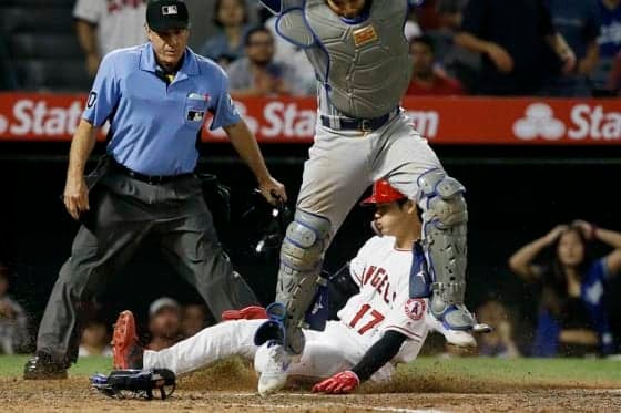 【動画】技ありスライディングで絶妙ホームイン! 大谷翔平が快足を飛ばして勝ち越しのホームを奪う