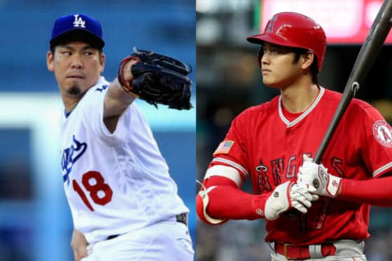 ドジャース・前田健太(左)とエンゼルス・大谷翔平【写真:Getty Images】