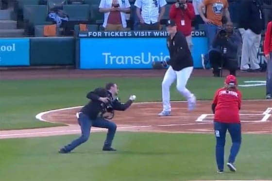 爆笑の“史上最低”始球式にサイ・ヤング賞右腕も“太鼓判”「トップ2に入る」
