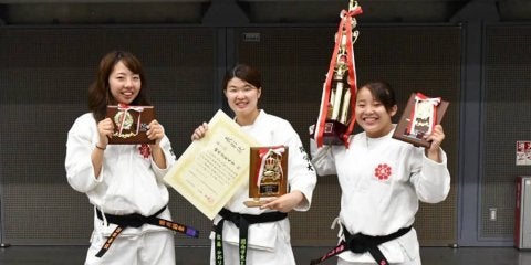 <写真・試合後、笑顔で写真撮影に応じる女子チーム> 6月16日、東京武道館にて、第32回全国大学選抜選手権大会が行わ…