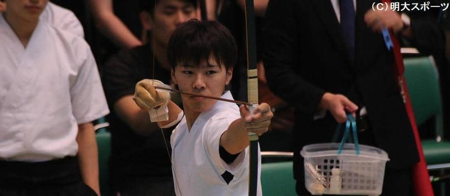 明大から3名が進んだ男子個人決勝。依田は順当に的中を重ねていくも、八寸的1本目で「誰かが当てた音が聞こえて、弱気になってしまった」。自分の形で矢を放せず、ここで優勝前線から脱落してしまう。それでも、入賞が懸かった遠近競射。同じ的を複数人で打ち、中心への距離で勝敗が左右する場面で「的を点で狙う練習の成果が出た」。放った矢が中心を捉え、会場がどよめくほどの射を見せた。大学で初の入賞をつかむも「一言で言ったら悔しい。次こそは優勝したい」。才能あふれるチームの主軸は、まだまだ満足はしていない。