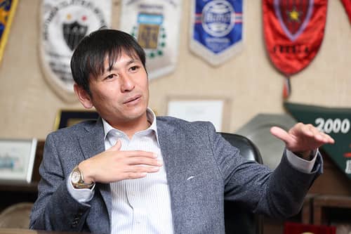 中田は、"フラット3"を組む手島と辻本と、呼吸を合わせるためによく話をしたという。このタイミングで上げると決めたら一生懸命に上がり、常に横を見ながらバランスを取っていた。ただ、"フラット3"は3人でできる戦術ではない。前線の選手がプレスに行き、チーム全体が連動しないとラインを上げることができない。