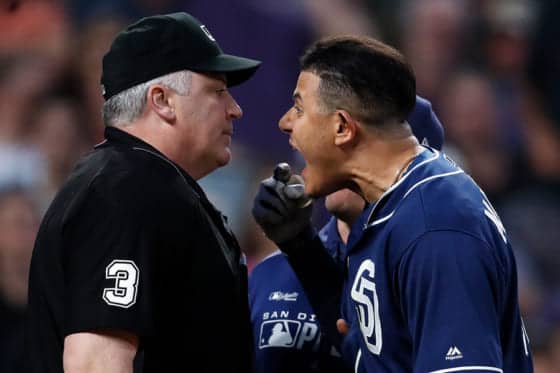 パドレスのマニー・マチャド内野手が15日(日本時間16日)、敵地・ロッキーズ戦で3年ぶり通算5度目の退場処分を受けた。5回1死で右腕マルケスの95.6マイル(約153.8キロ)のフォーシームで見逃し三振に倒れた際に球審のビル・ウェルク審判に激しく抗議して16年6月7日以来の退場となった。