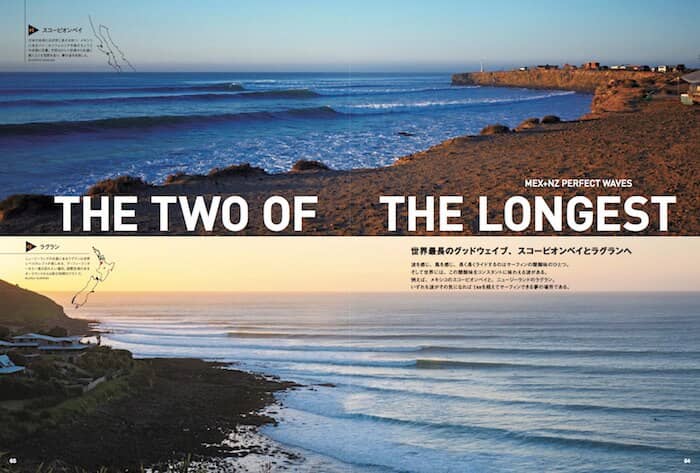 波を感じ、風を感じ、長く長くライドするのはサーフィンの醍醐味のひとつ。そして世界には、この醍醐味をコンスタントに味わえる波がある。例えば、メキシコのスコーピオンベイと、ニュージーランドのラグラン。いずれも波がその気になれば 1kmを超えてサーフィンできる夢の場所である。