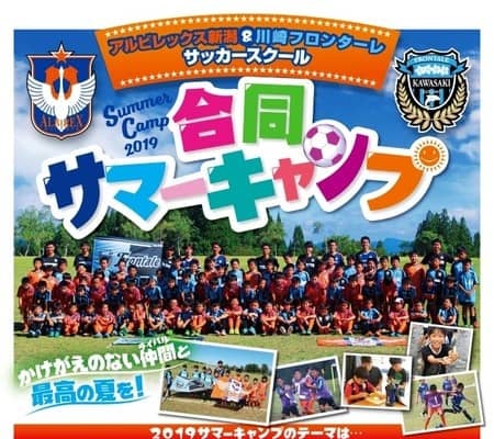 アルビレックス新潟サッカースクールは、小学4~6年生を対象にした「川崎フロンターレとの合同サマーキャンプ」を8月5日(月)~8日(木)の期間、新潟県にて開催する。