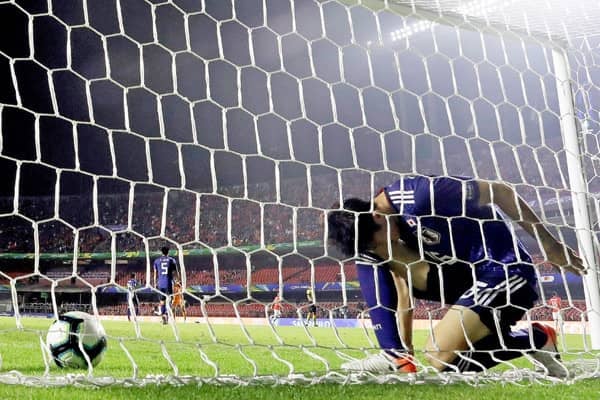 ゴールを阻止できずにがっくり肩を落とす冨安健洋