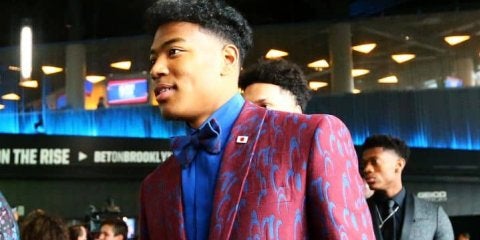 運命のNBAドラフト、上位指名が期待される八村塁は『日の丸』をつけて会場入り | バスケットボール