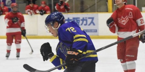 <写真・第3Pに得点を決めたFW舩谷> 6月22日、関西大学たかつきアイスアリーナにて第68回関西学生氷上競技選手権…