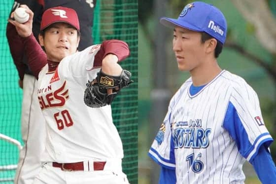 楽天・古川侑利(左)、DeNA・大貫晋一【写真:荒川祐史】
