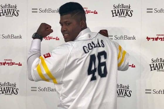 ソフトバンクは24日、キューバ人育成選手のオスカー・コラス外野手と支配下選手契約を締結したと発表した。同日、ヤフオクドーム内で記者会見を行い「日本に来て3年目。毎日頑張ってきて支配下登録になれて嬉しいです」と語った。背番号は「46」に決まった。