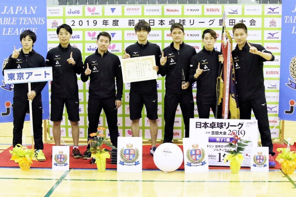 写真:4期ぶりに優勝した東京アート/提供:日本卓球リーグ実業団連盟