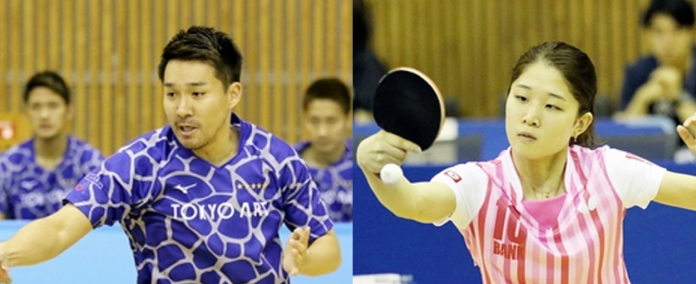写真:最高殊勲選手賞を受賞した高木和卓(東京アート)、安藤みなみ(十六銀行)/提供:日本卓球リーグ実業団連盟
